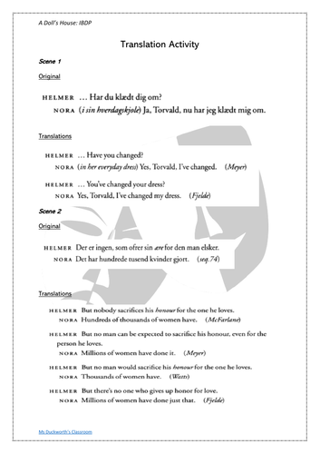 Introductory Lessons A Doll S House Ibdp Teaching Resources