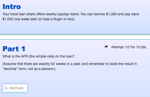 Solved Intro Your Local Loan Shark Offers Weekly Payday Chegg Com